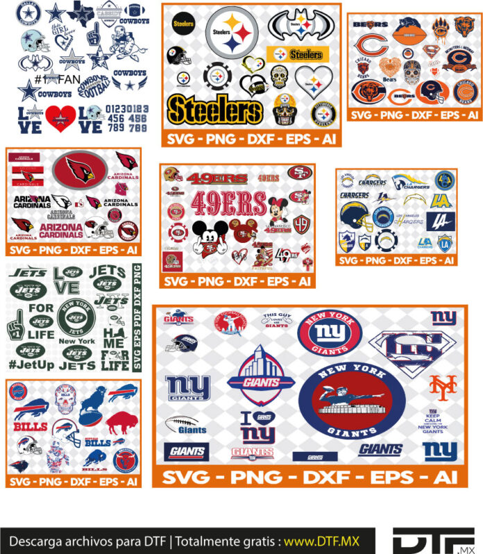 ¡Fans de la NFL, atención! Descarga vectores oficiales de la National Football League (NFL) y lleva el espíritu del fútbol americano a tus diseños con la técnica Direct-To-Film. Con estos vectores de alta calidad, podrás crear impresiones profesionales en tus pantallas de serigrafía y mostrar tu pasión por tu equipo favorito de la NFL en tus diseños. Personaliza camisetas, sudaderas y otros productos con los logotipos y emblemas auténticos de la NFL. ¡Descarga ahora y crea diseños de fútbol americano con la autenticidad de la NFL en tus propias creaciones! ¡Vamos a hacer vibrar la temporada con diseños de la NFL hechos por ti!
